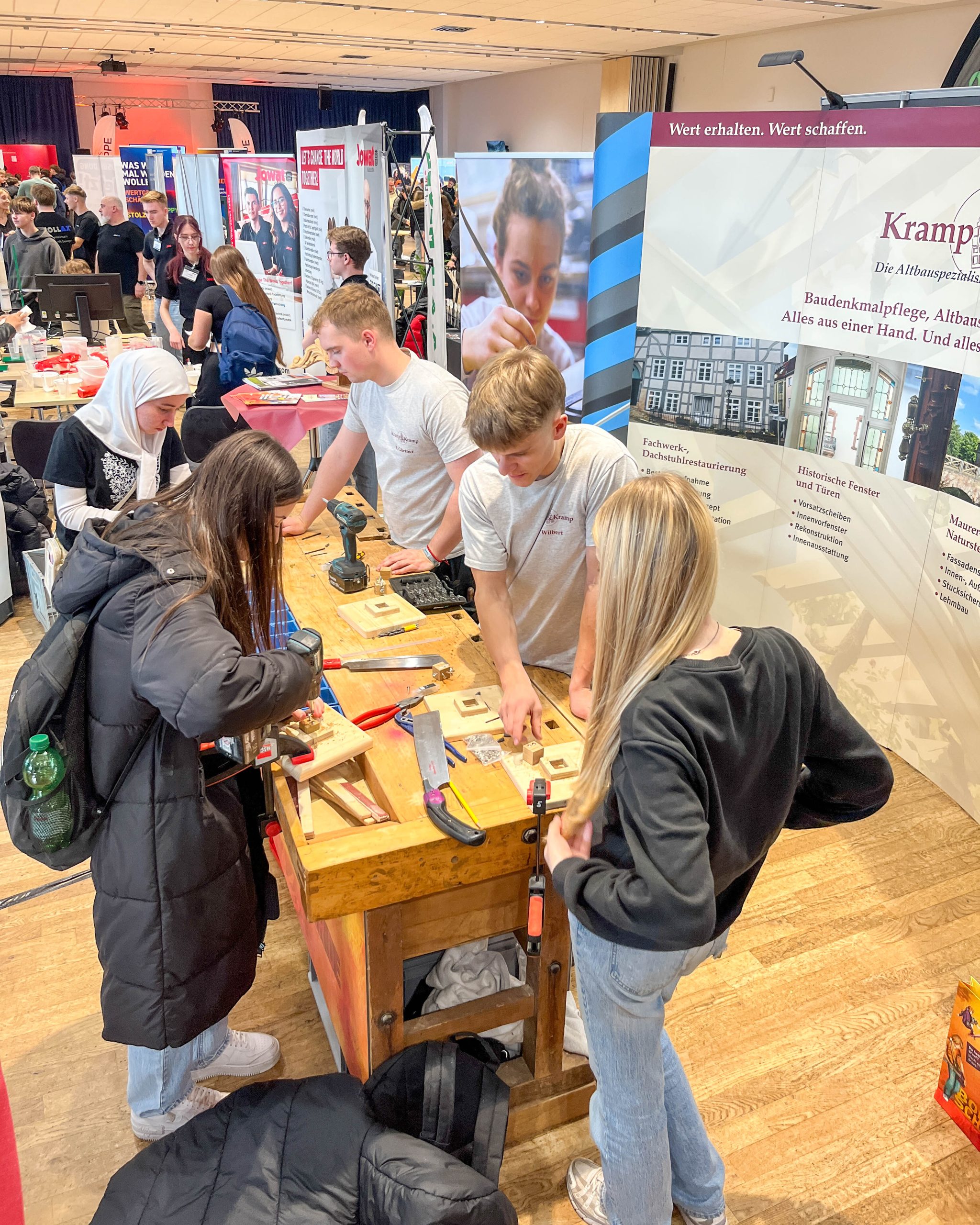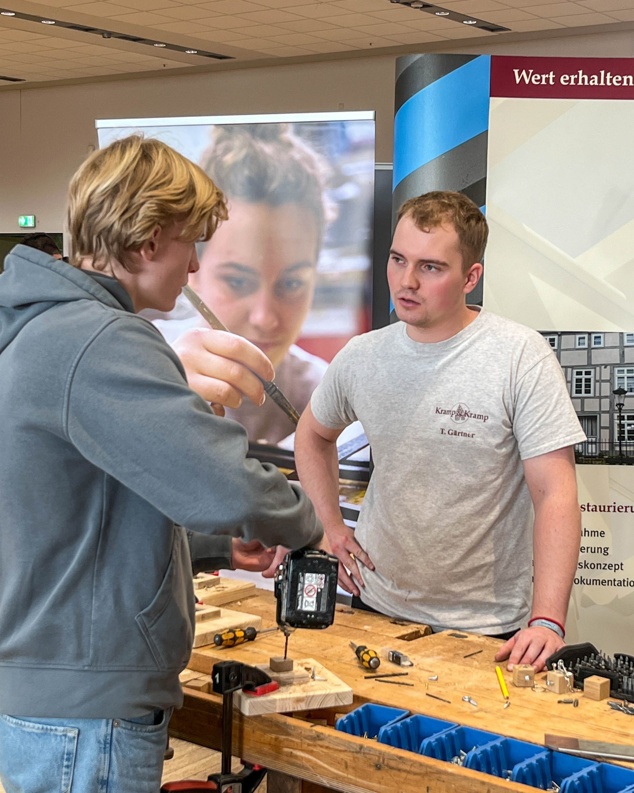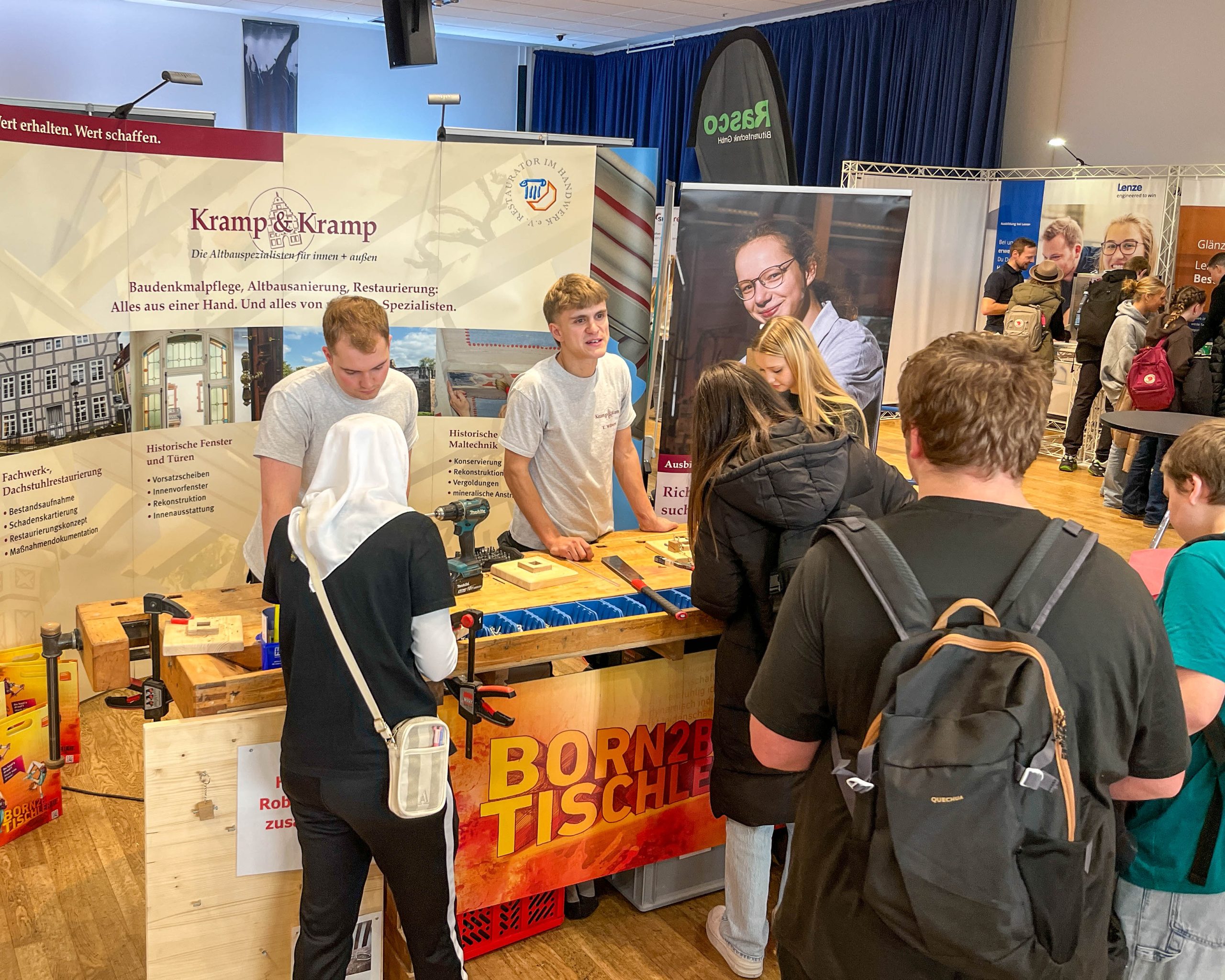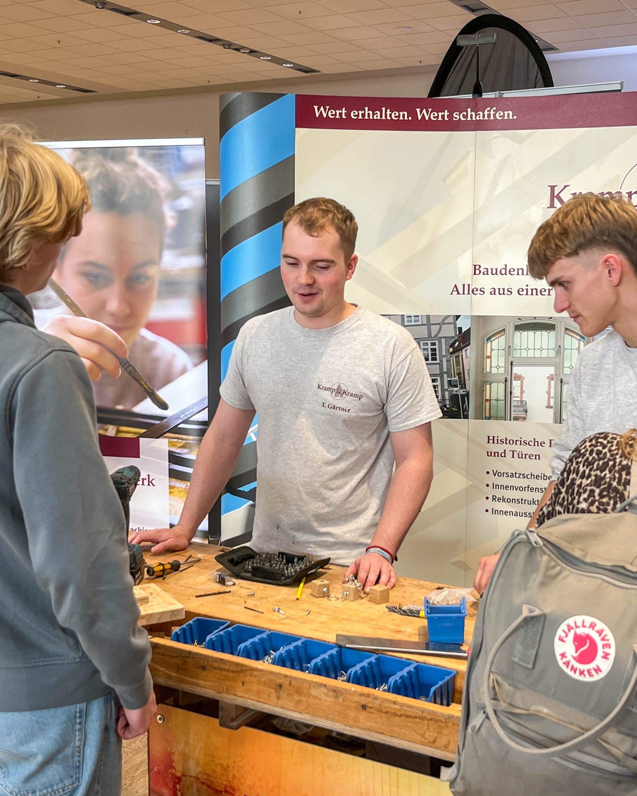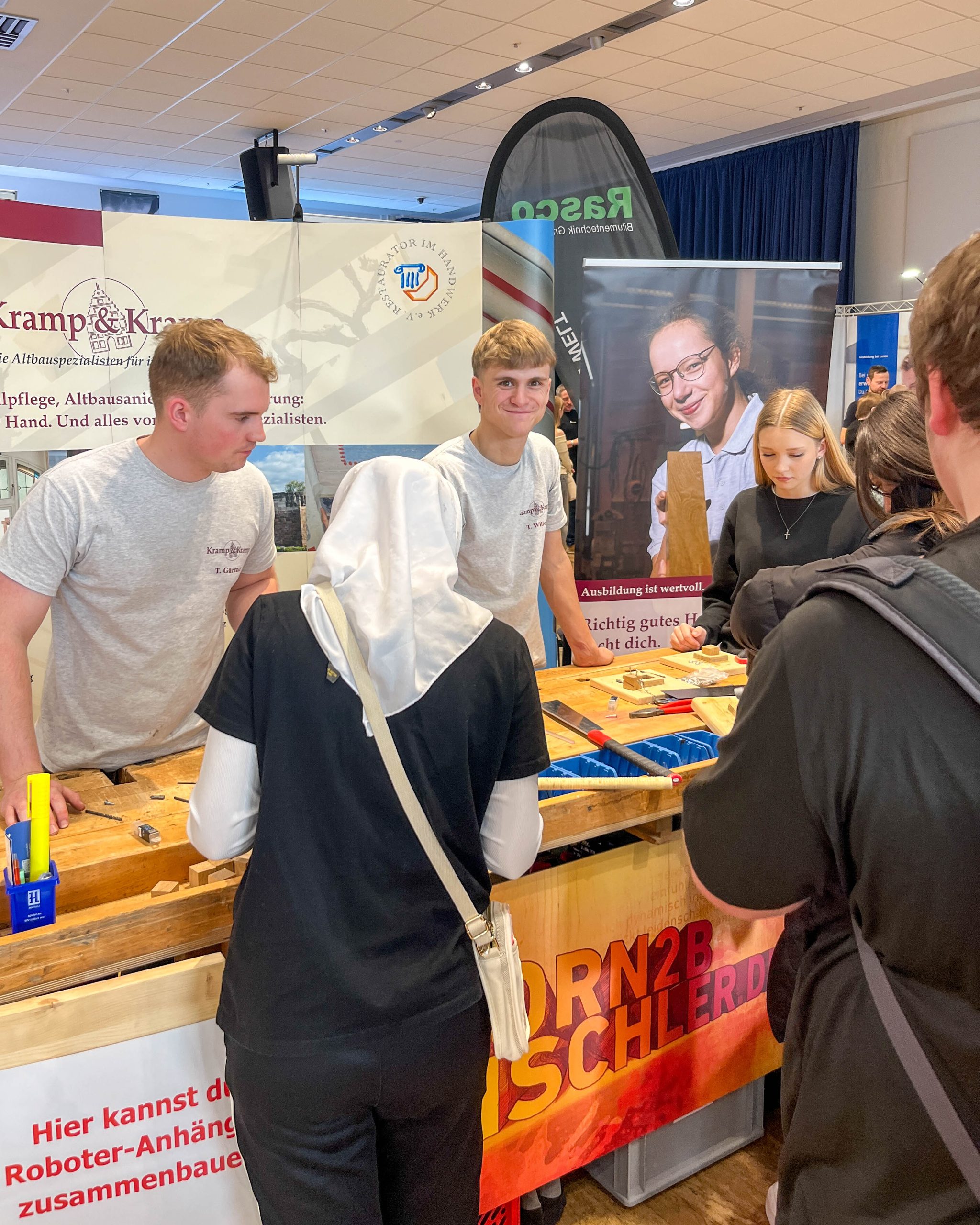 Dabei gab es spannende Einblicke in die vielfältige Arbeit des Tischlerhandwerks, und unsere Auszubildenden beantworteten zahlreiche Fragen rund um Ausbildung, Praktikum und Berufsalltag bei Kramp & Kramp.