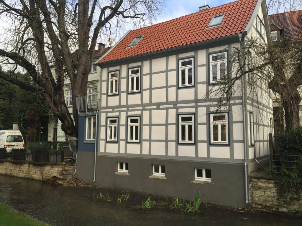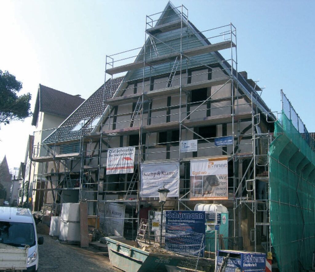 Kramp & Kramp bietet hier alles aus einer Hand: Planung, statische Sicherung, Zimmerer-, Maurer-, Putzarbeiten, Innendämmungen, Lehmbauarbeiten, Malerarbeiten innen und außen, falls erforderlich technische Gewerke. Die Altbauspezialisten für innen + außen haben schon viele Fachwerke erfolgreich saniert. Schritt für Schritt wird Erhaltenswertes durch die erfahrenen, qualifizierten Mitarbeiter bearbeitet und behutsam restauriert.