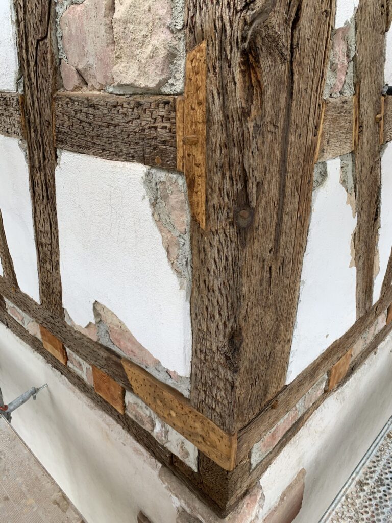 Altes Fachwerk ist ein Meister der Tarnung. Man sieht es ihm nicht an, was es alles auf oder unter dem Kerbholz hat. Dies kann Insekten- oder Pilzbefall sein. Es können sich vor allem Farbspuren von anno dazumal darunter verbergen. Was auf den ersten Blick intakt erscheint, ist bei näherer Betrachtung längst nicht so. Deshalb ist es unerlässlich als Erstes eine genaue Bestandsaufnahme vorzunehmen. Hier wird das äußere Erscheinungsbild bewertet, vor allem aber der Zustand der Hölzer und Gefache untersucht. Auch die Bewertung der bauphysikalischen Eigenschaften fließt in die Untersuchungen mit ein. Erst danach folgen die nächsten Schritte.
