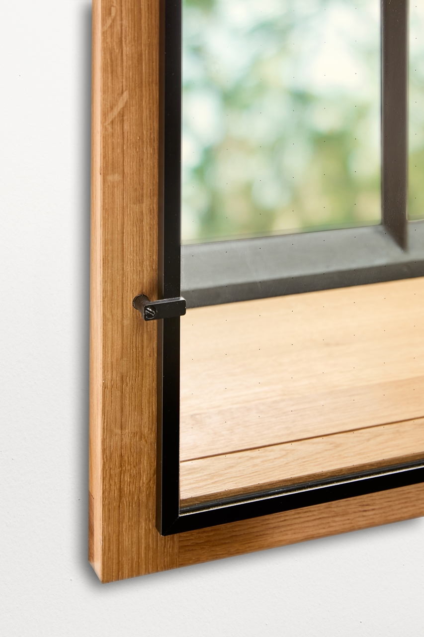 Das einzigartige System besteht aus einem Blendrahmen und der Vakuumisolierglas-Vorsatzscheibe, der mit Abstand vor das historische Bestandsfenster montiert wird.