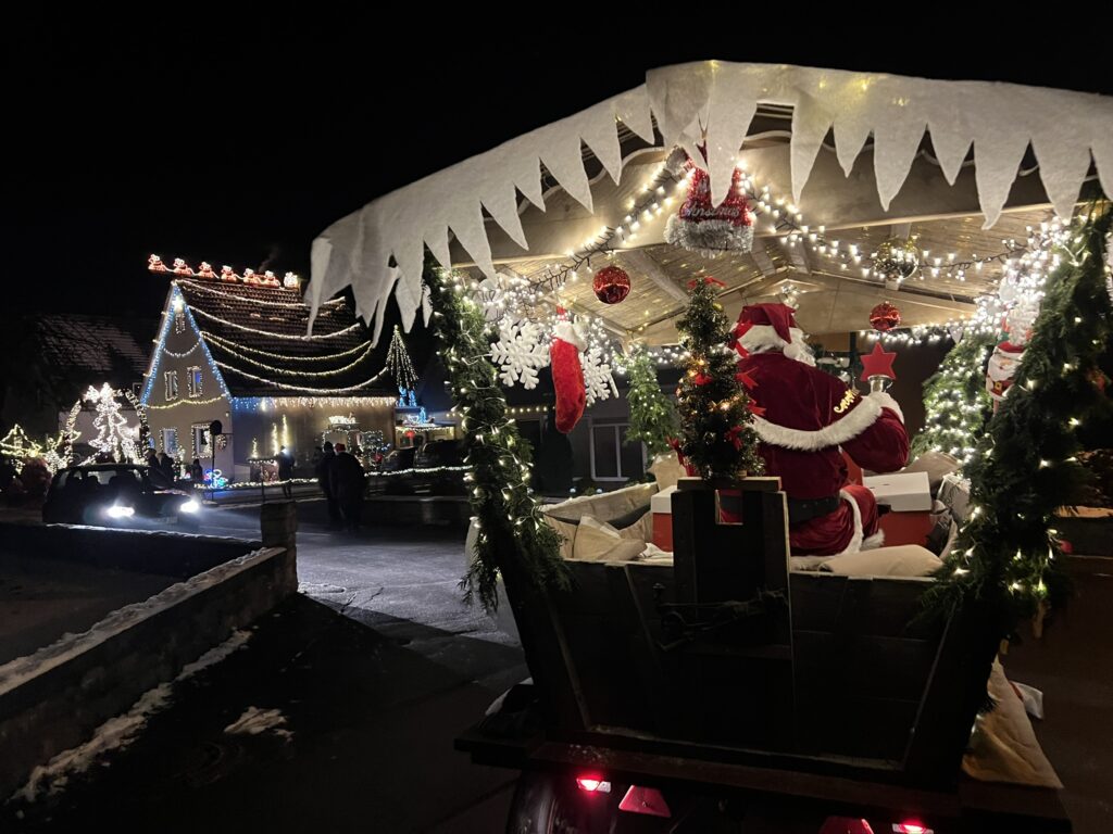 Der Weihnachtsmann ist wieder unterwegs – begleitet von den „Mönchen vom Berch“ auf seinem historischen, liebevoll geschmückten Gespann. Auch in diesem Jahr bringen wir gemeinsam festliche Stimmung, Lichterglanz und strahlende Kinderaugen in unsere Region.